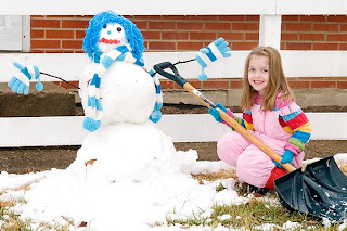 We had and awsome snow on Saturday. The streets were clear but there was just the right amount of snow to have FUN ! It's was nice wet snow, the kinda snow that is great for snowballs ( the kind that could balck your eye ) and perfect for a snow man. Now I'm not one of those super orgainzed moms who has a little snowman kit or even thougth to buy a carrot when I saw snow in the forcast. Still I help out my little one with my ingenuity. We used and old pom pom for hair secured with a bobby pin. The beautiful facial features were crafted with bottons ( making memories from my scrapbooking days ) and bobbiy pins the I stuck through the holes.
